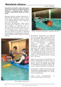 Harjoitusten tavoitteena oli opetella juuri ylä- ja alakehon erillisiä toiminto- ja, lanneliikettä, pää alaspäin oloa, sivut- tain melontaa, melatukia, keulaeskimoa ja eskimopyörähdystä. Osa harjoitteli myös kuvitteellisen kajakkiin juuttuneen melojan kääntämistä kajakkinsa kanssa pystyyn sekä uimasillaan että toisesta kajakista. Osa harjoitteli myös kajakin kanssa uimista pää alaspäin, yhteinen havainto oli, että yllättävän helposti altaan keskeltä ui hengittelemään altaan reunalle. Ta- voite oli näyttää harjoituksia, joita voi tehdä yksin ja yhdessä kaverin kanssa myös rannassa.