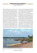 hän suostuisi tulemaan kaksikon kyytiin. Höh, miten niin oppia - minähän olin käynyt jo kurs- sin! No, vuosien saatossa meidän kummankin aatokset ovat ehkä hieman muuttuneet. Miehen ajatus taisi mennä alussa jotenkin siihen malliin, että parasta heittää nainen tar- peeksi kylmään veteen niin oppiipahan uimaan kunnolla. Niinpä sitten löysin itseni melonnan alkutaipaleella joskus aaltojen keskeltä aavalta mereltä, toisinaan keskeltä vilkkainta laivavä- ylää myrskytuulen puskiessa sivusta,edestä ja takaa. Siinä vaiheessa minä vielä kuvittelin osaavani meloa eikä minua pelottanut kuin aivan pikkuisen. Sivulta sateli käskyjä: ”Melo!”