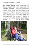 Aamupalan jälkeen matka jatkui rantoja myöten Kolovedenlahdelle, jossa nousimme tutustumaan leiripaikkaan ja tapasimme mukavan pariskunnan, joilla oli paljon tarinoita kerrottavanaan Lapin vaelluksistaan. Seuraavaksi pysähdyim- me Kirkkorannassa, jossa oli kaksi saksa- laista melojaa pitämässä taukoa melko kovalta tuulelta, joka meille oli vastainen. Kirkkorannassa oli kajakkien vuokraus- piste turisteille. Kävimme ihailemassa myös Ukonvuoren kalliopiirroksia ja kierreltiin saarien lomitse illaksi Lapin- niemen leiripaikalle. Täällä kalat ymmär- sivät ranskalaisten päälle. Sain mato- ongella punaeväisen lähes kilon painoi- sen säynävän. Paistoimme sen juoksevassa margariinissa ja kyllä itse ongittu on sitten hyvää! Ennen lähtöä taas uimassa pehmeässä järvivedessä ja matka jatkui Pitkäsaaren leirintäpaikan